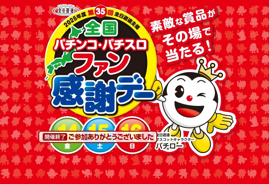 大阪府遊技業協同組合(大遊協)は2025年11月14日(金)~16日(日)の3日間、パチンコ・パチスロファンの皆様へ日頃の感謝の...